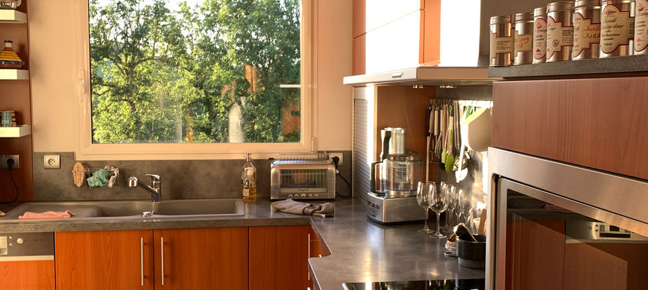 La cuisine, auparavant fermée, a été ouverte sur la pièce de vie comprenant la salle à manger et le salon attenant. Dans cet espace ouvert, deux fonctions ont été intégrées : une cuisine et une salle à manger. Des rangements et plans de travail supplémentaires ont été créés, la fonctionnalité de l’espace a été améliorée, tout en optimisant la circulation des personnes.