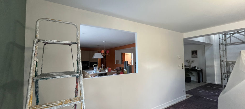 Dans ce salon baigné de lumière, l’univers jungle prend forme entre élégance et modernité. Les murs habillés de papier peint végétal et de teintes vert profondes instaurent une atmosphère immersive. L’escalier hélicoïdal au garde-corps en verre devient une pièce maîtresse, reliant le salon et la mezzanine. Celle-ci accueille désormais un billard et du mobilier sur mesure, tandis que le rez-de-chaussée se réinvente autour de suspensions lumineuses, de stores californiens et d’un bar rénové. Un projet où nature et design s’entrelacent dans un équilibre subtil et durable.